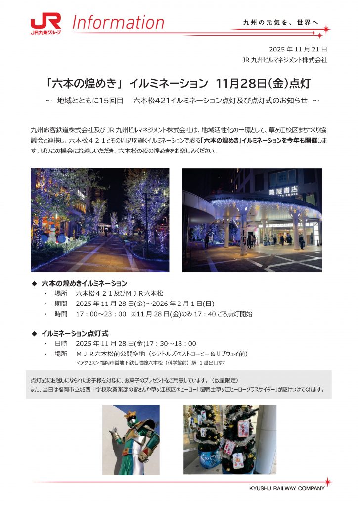 「六本の煌めき」イルミネーション 11月28日(金)点灯
