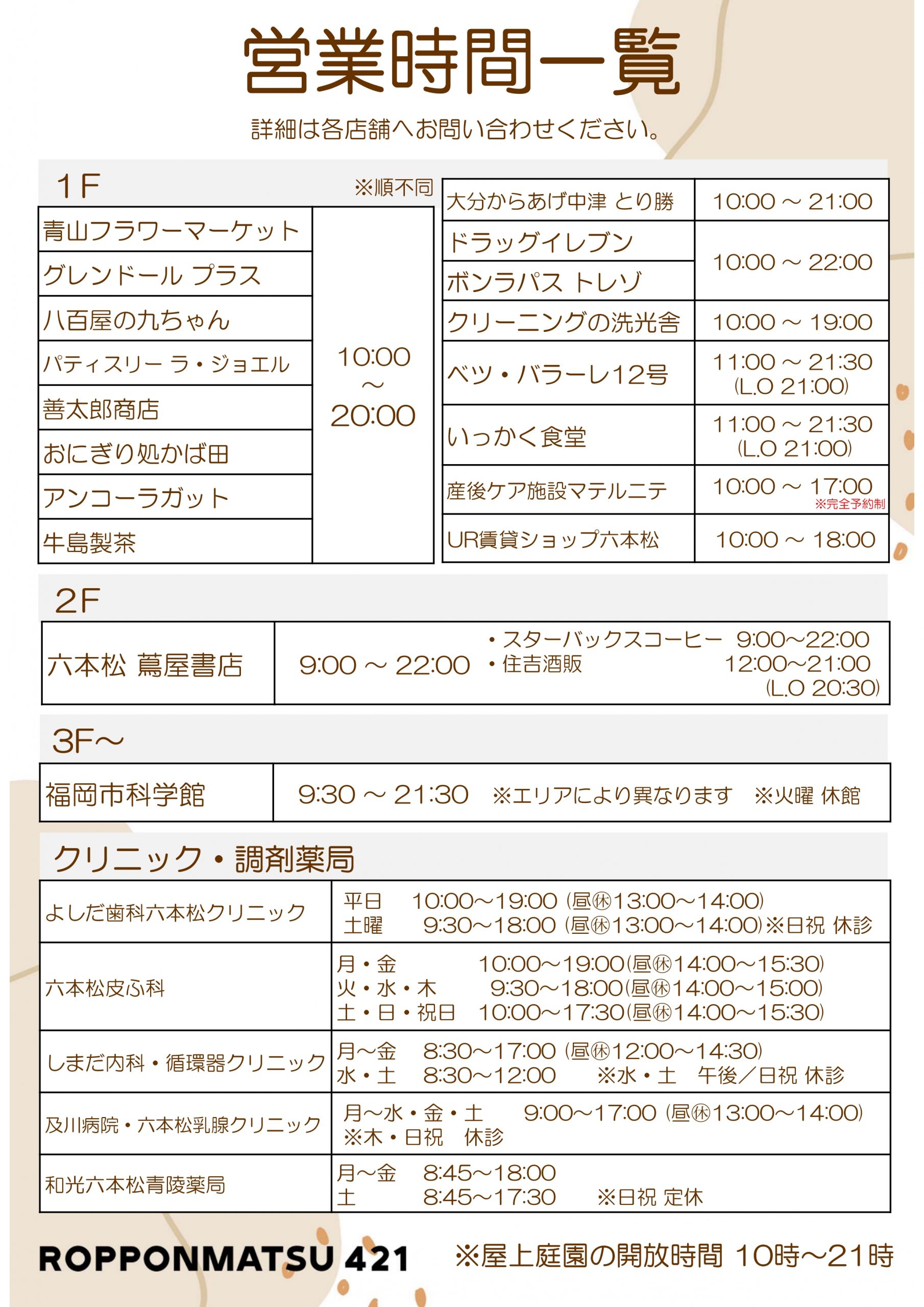 【お知らせ】営業時間(六本松421・MJR六本松)