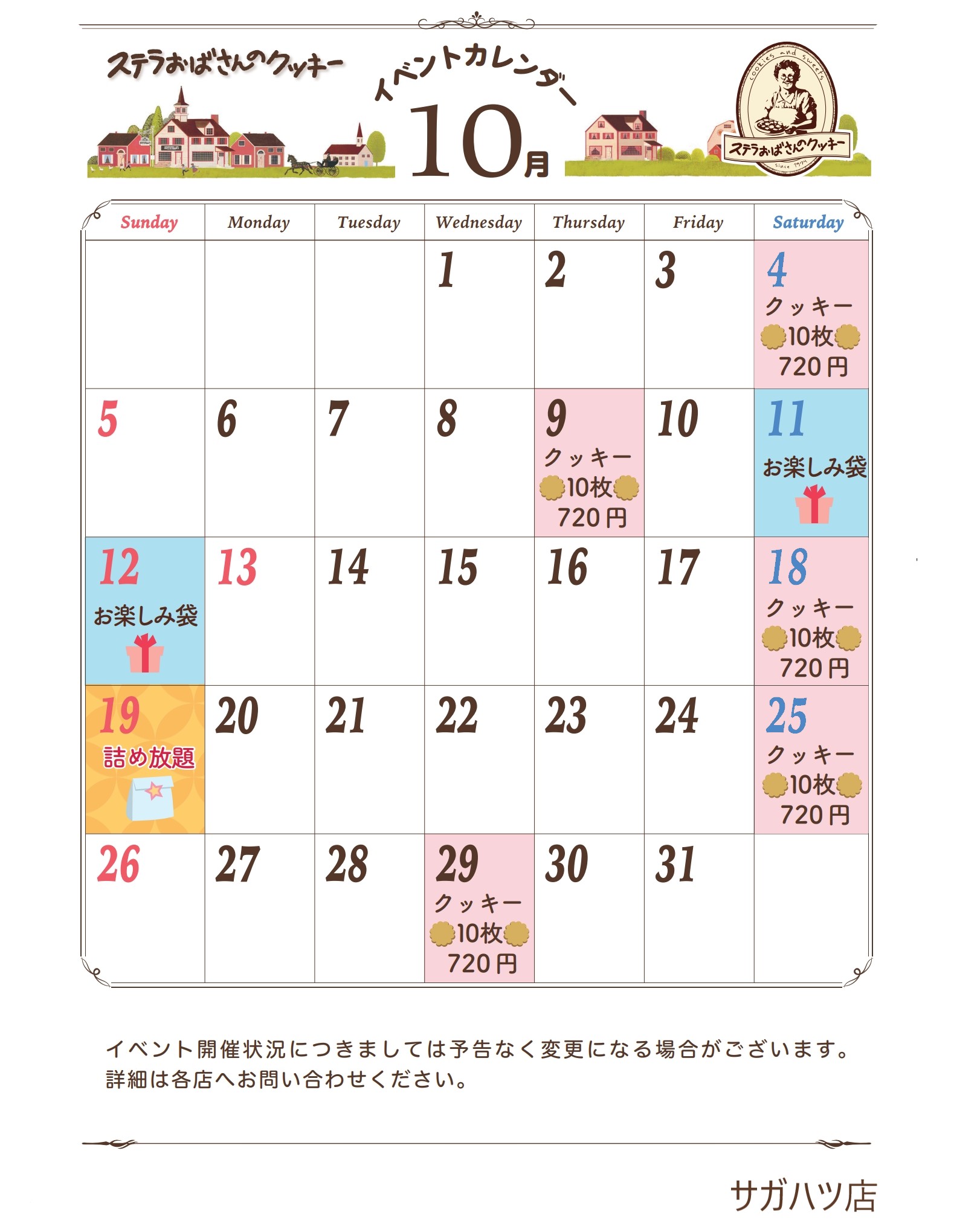 ~ステラおばさんのクッキーからお知らせ(10月のカレンダー)🍪~